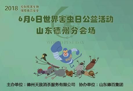 6月6日為世界害蟲日。6日上午,2018德州世界害蟲日公益宣傳暨有害生物防治與食品安全活動在德州市澳德樂時代廣場舉行。本次活動由德州天敵消殺服務有限公司主辦,旨在喚起更多人對害蟲防制事業(yè)的關注,讓科學的害蟲防制理念深入人心。