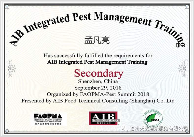 本次會(huì)議內(nèi)容涵蓋“健康與病蟲害管理、食品安全與蟲害防制、大眾健康教育、登革熱等病媒傳播疾病流行特點(diǎn)、衛(wèi)生用農(nóng)藥風(fēng)險(xiǎn)評(píng)估、病媒生物控制標(biāo)準(zhǔn)、無(wú)人機(jī)與蟲害防制、倉(cāng)儲(chǔ)害蟲防制技術(shù)、紅火蟻防制技術(shù)、有害生物防制網(wǎng)約服務(wù)模式、數(shù)字防控嚙齒動(dòng)物及新技術(shù)新方法等蟲害管理領(lǐng)域的熱點(diǎn)及難點(diǎn)問(wèn)題;期間,孟凡亮經(jīng)理還參加了AIB食品安全綜合蟲害管理培訓(xùn)。